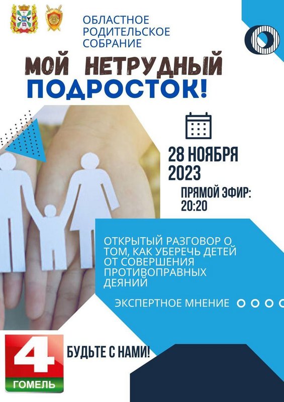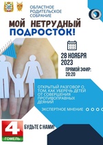 28 ноября 2023 года в 20:20 в прямом эфире "Беларусь 4 Гомель" ! впервые пройдёт областное родительское собрание "Мой нетрудный подросток!"