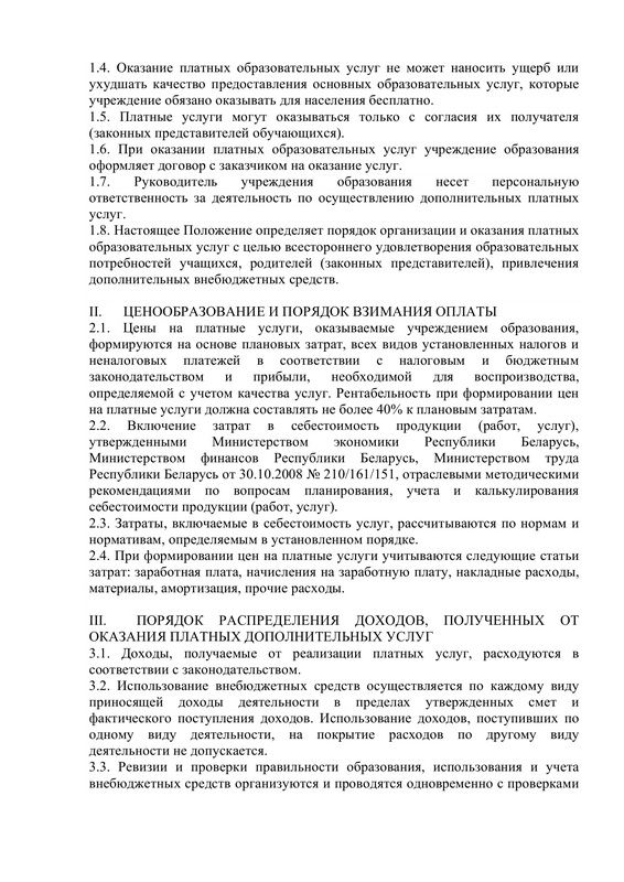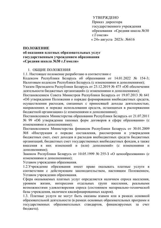 ПОЛОЖЕНИЕ об оказании платных образовательных услуг государственным учреждением образования «Средняя школа №30 г.Гомеля»