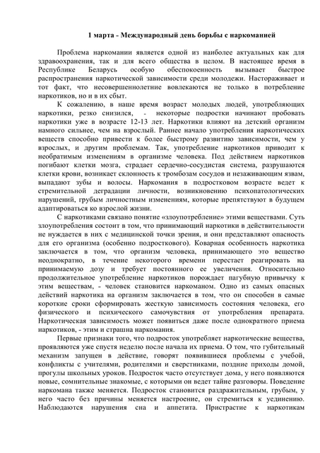 1 марта ˗ Международный день борьбы с наркоманией