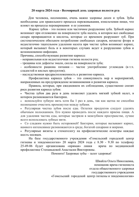 20 марта 2024 года - Всемирный день здоровья полости рта