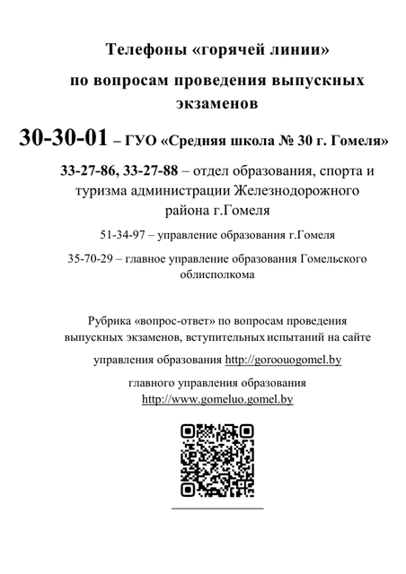 Телефоны «горячей линии» по вопросам проведения выпускных экзаменов