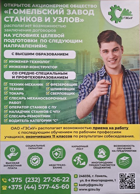ОАО "ГЗСиУ" предлагает целевое обучение для выпускников 9-х и 11-х классов