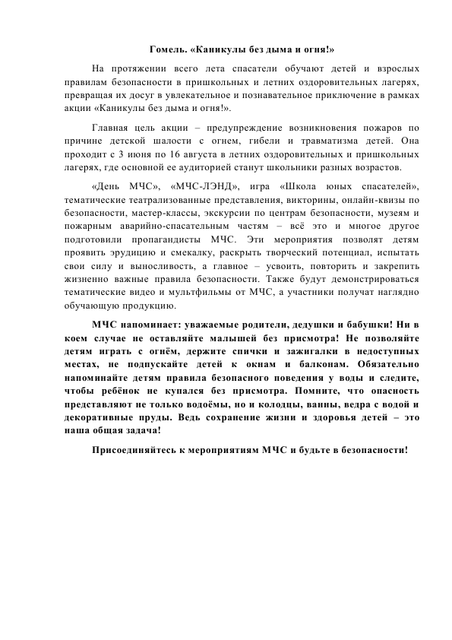 Каникулы без дыма и огня!