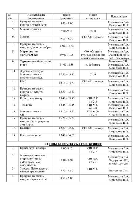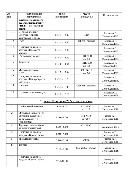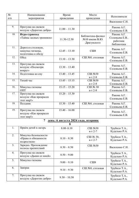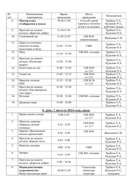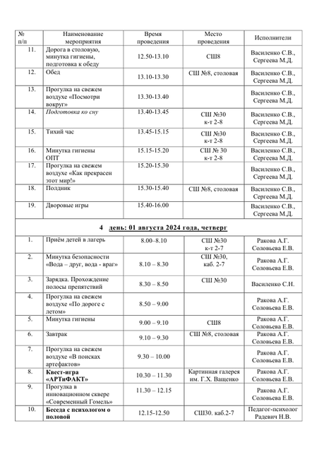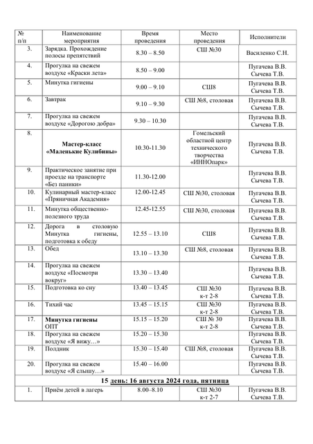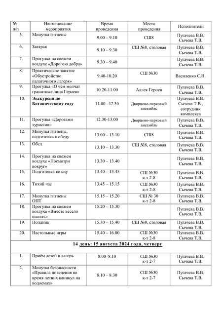 - Расписание