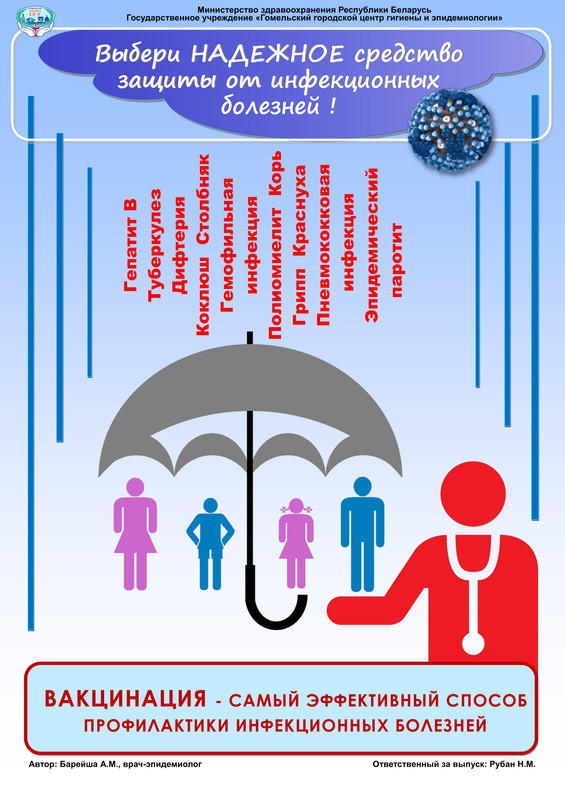 В соответствии с Национальным календарём профилактических прививок в Республике Беларусь предусмотрена бесплатная плановая иммунизация против 13 инфекционных заболеваний (вирусный гепатит В, туберкулез, пневмококковая инфекция, дифтерия, столбняк, коклюш, гемофильная инфекция, полиомиелит, корь, эпидемический паротит, краснуха, грипп, инфекция, вызванная вирусом папилломы человека), а также иммунизация по эпидемическим показаниям против 21 инфекции отдельным профессиональным группам; лицам, проживающим на территории с высоким уровнем заболеваемости природно-очаговыми инфекциями; контактным в очагах инфекций; при выезде в страны, неблагополучные по желтой лихорадке и т.д. По желанию граждан вакцинацию против инфекций, не входящих в Национальный календарь профилактических прививок, можно провести в организациях здравоохранения за счет собственных средств.