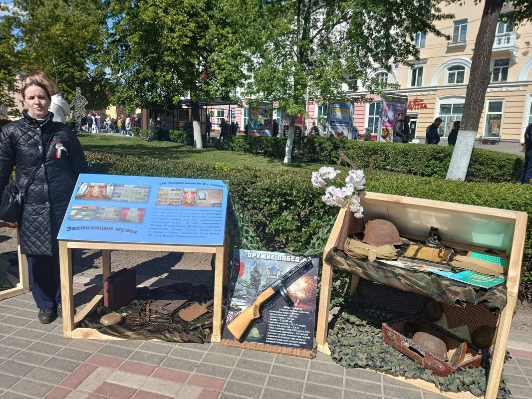 Сегодня ГУО "Средняя школа №30 г.Гомеля" представила школьные Музей Боевой славы и Политехнический музей в сквере Кирилла Туровского. Жители города активно интересовались экспонатами музеев.