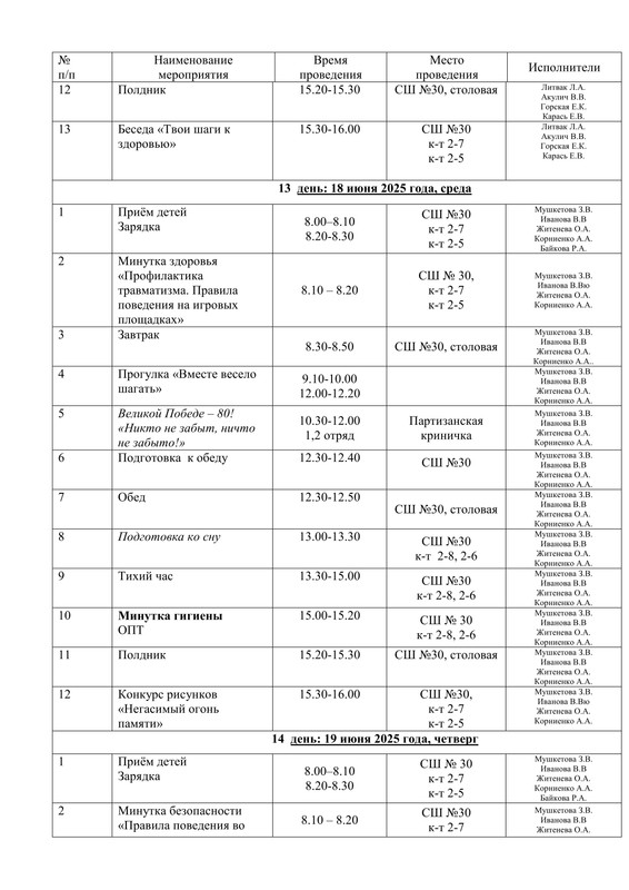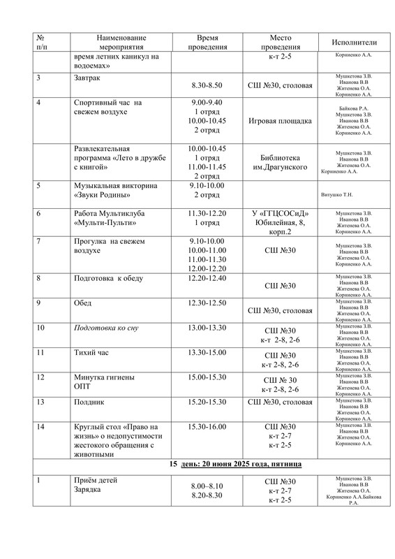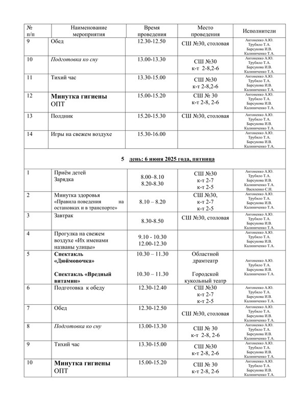 - Расписание