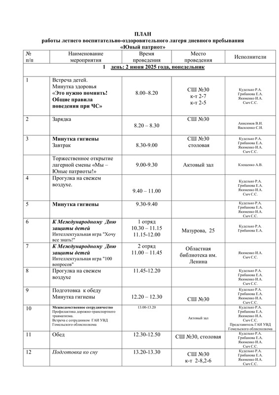 - Перечень закрепленных жилых домов, расположенных на территории Железнодорожного района г. Гомеля, за учреждением образования ГУО «Средняя школа №30 г.Гомеля»