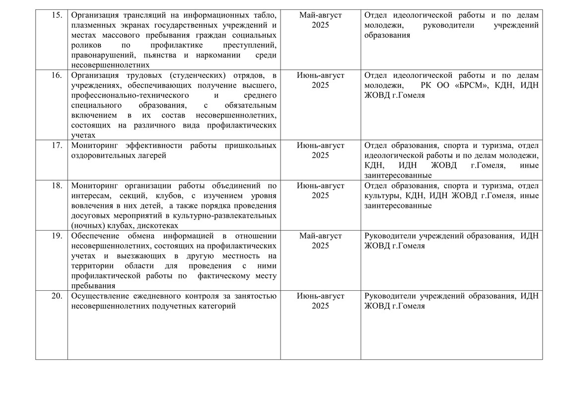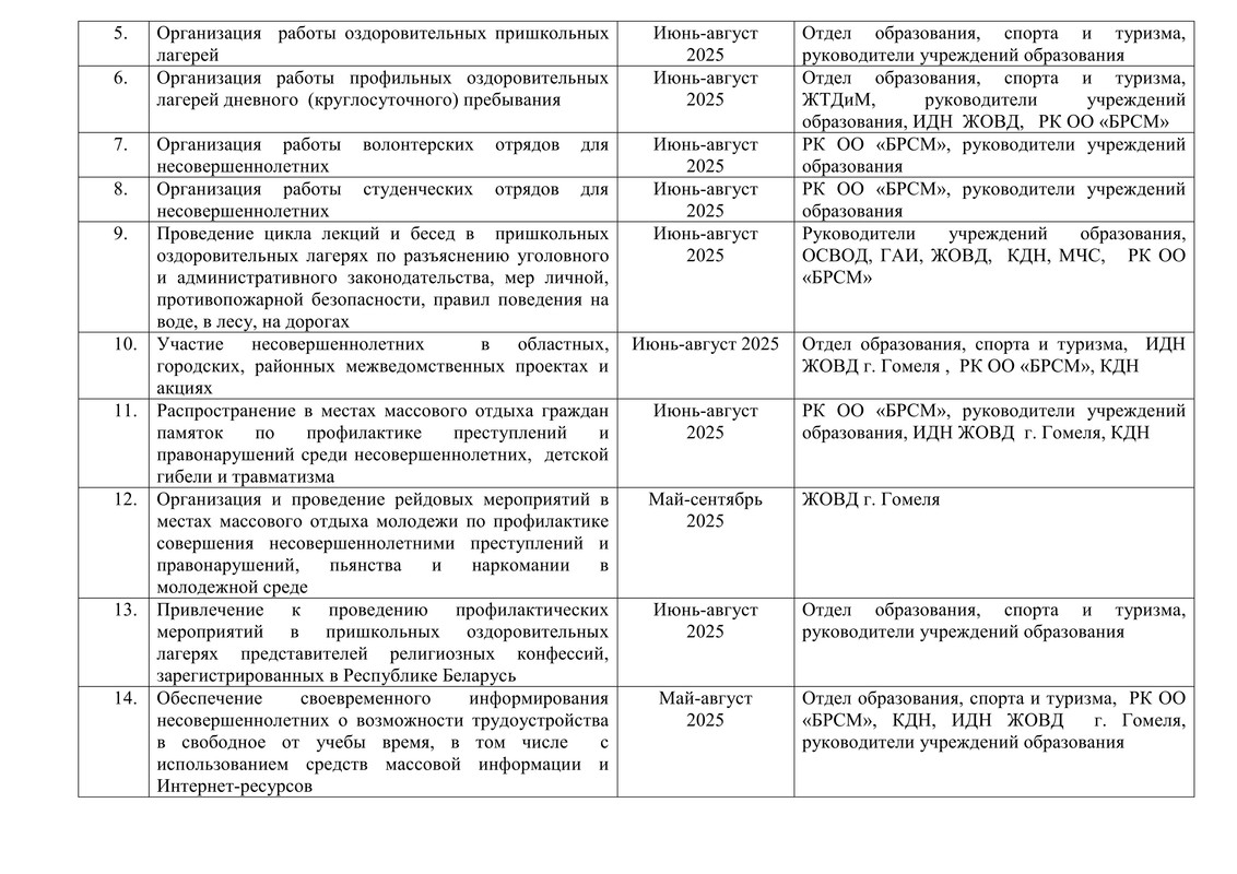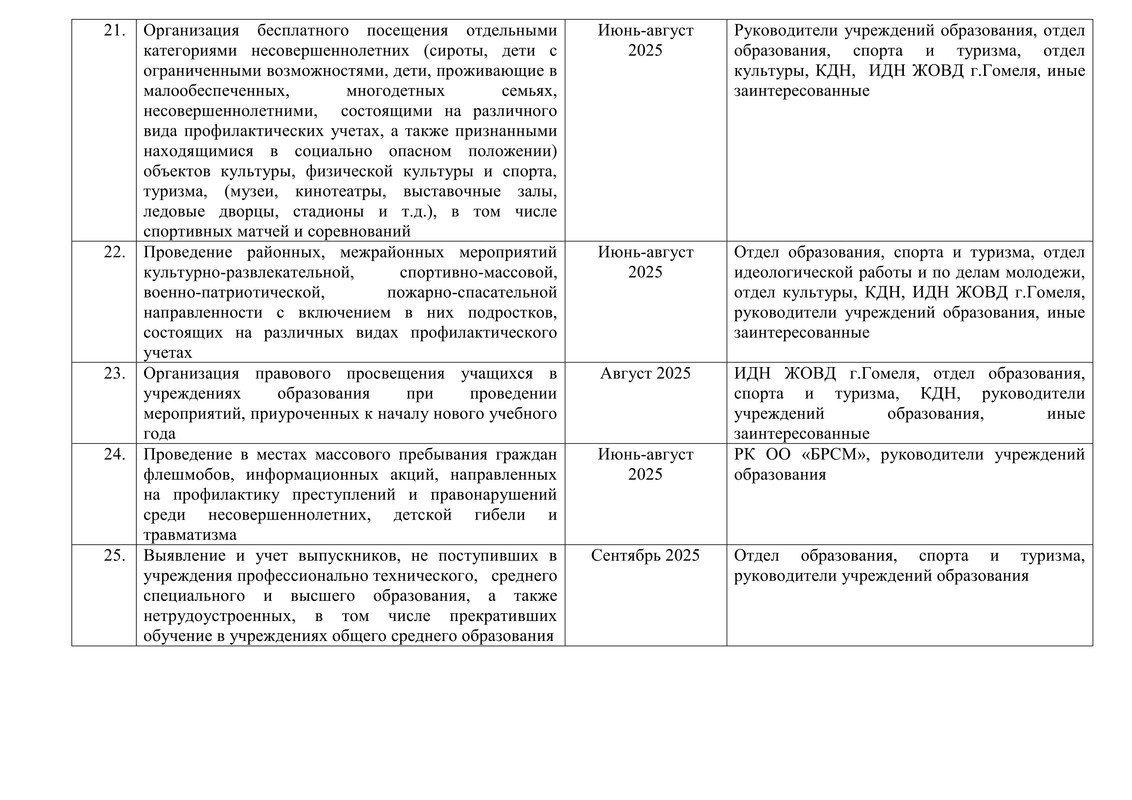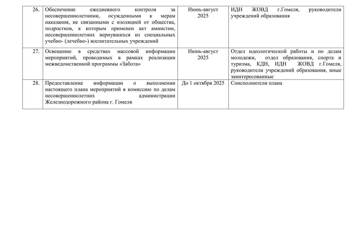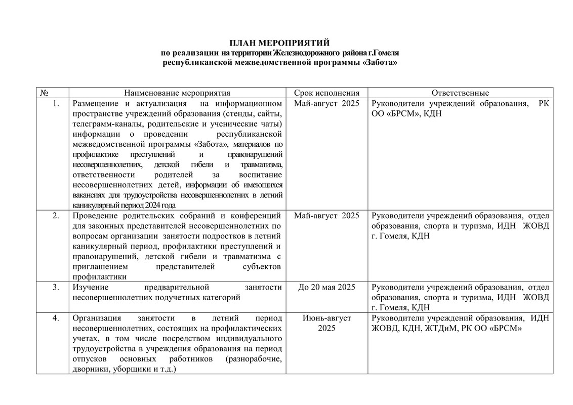План мероприятий по реализации на территории Железнодорожного района г. Гомеля республиканской межвдомственной программы "Забота"