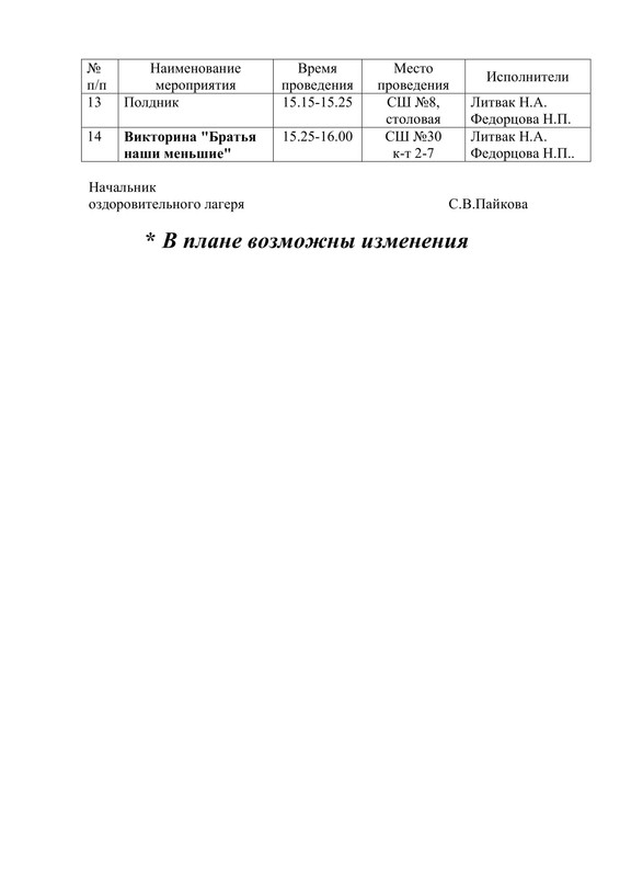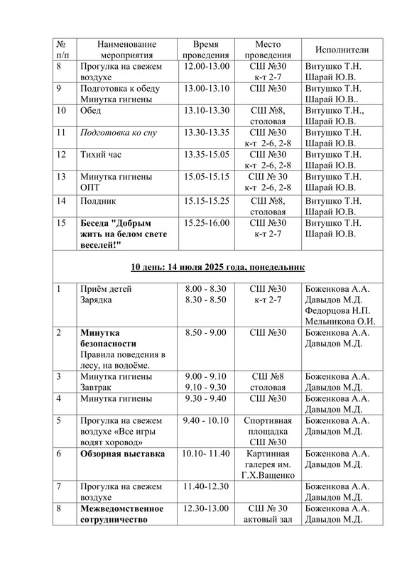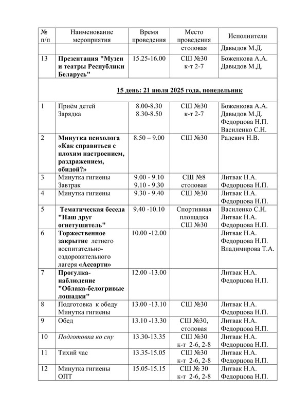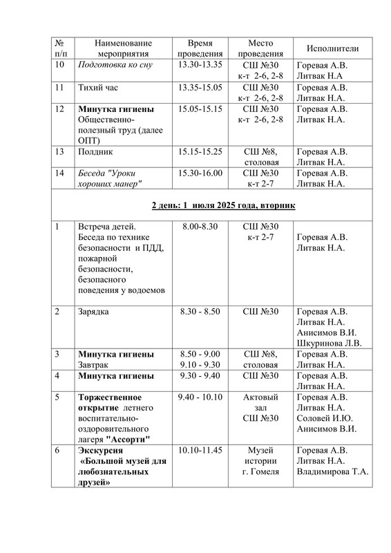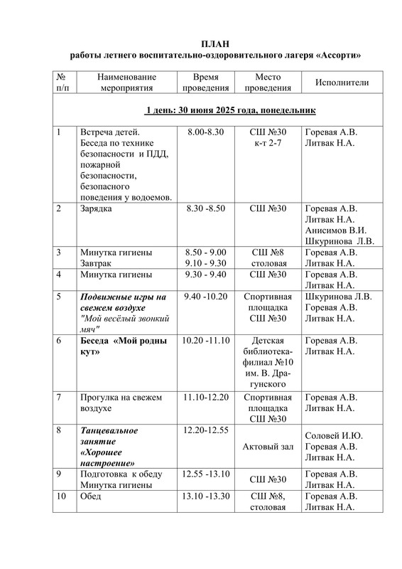 План работы летнего воспитательно-оздоровительного лагеря "Ассорти"